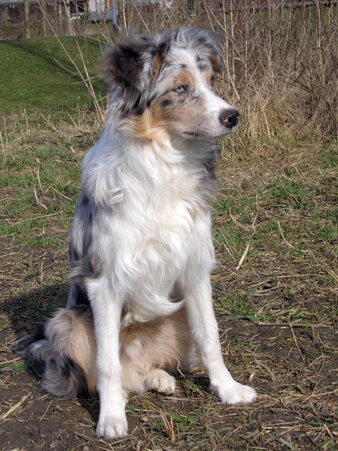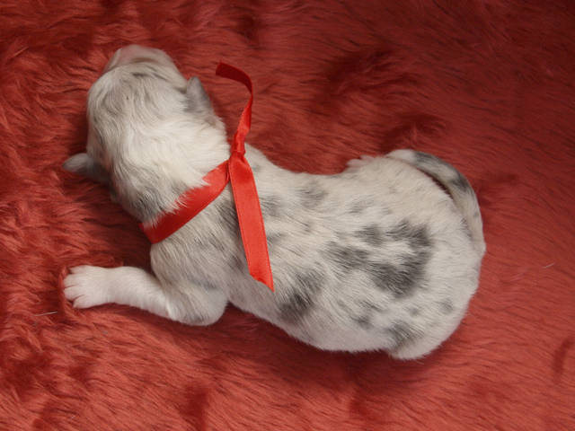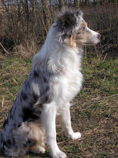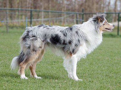| Coat Colour | Slate merle and tan |